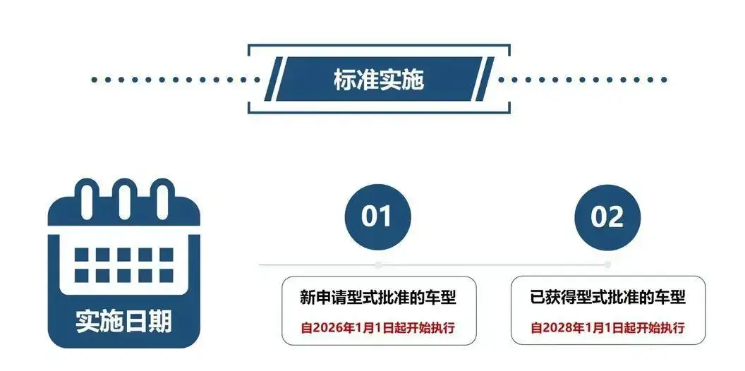 新规要求,2026年1月1日新申请型式批复的车型必须达标,否则工信部直接不予备案;2025年底前已获批的老车型,有两年缓冲期,到2028年必须全部达标,否则也会被强制停产退市。